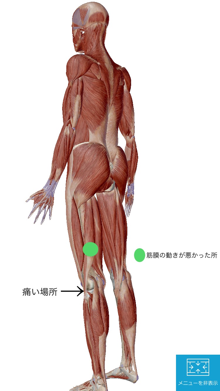 また、前回のブログでお伝えした場所(大腿筋膜〜腸脛靱帯)とセットで動きが悪くなっている方も多いです。