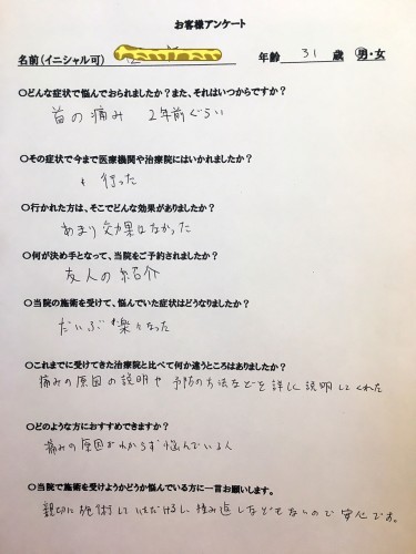 お客様の声~首の痛み・30代男性~